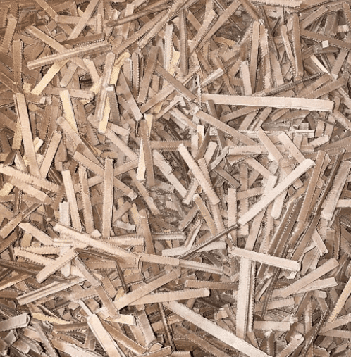 Material de cartón reciclado y reutilizable para proteger y amortiguar artículos dentro de una caja. Evita que los